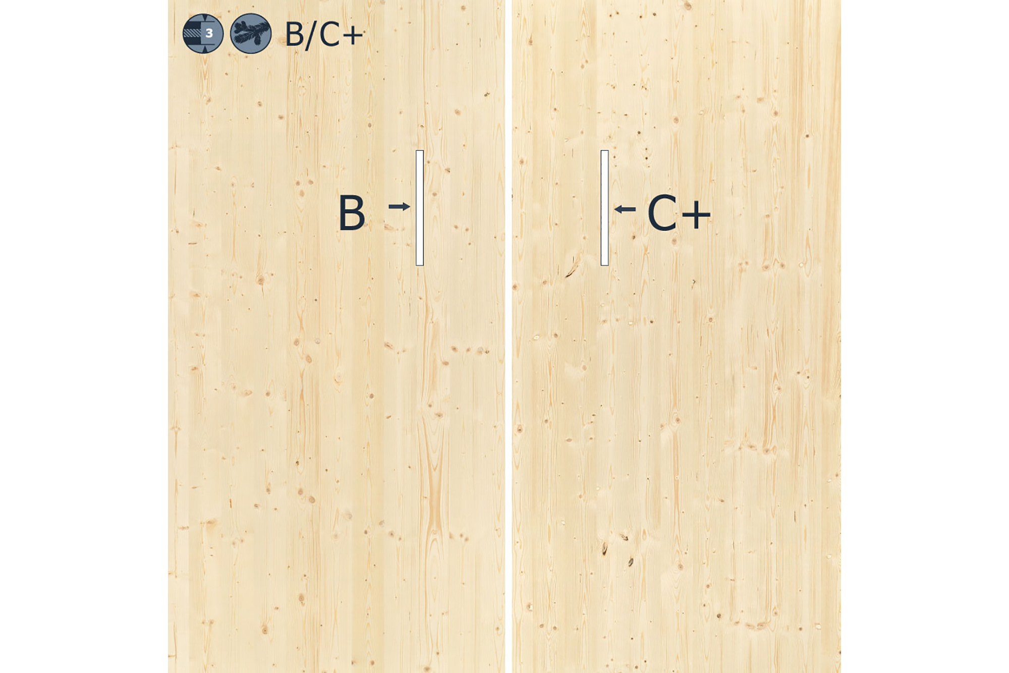 Massiv-Konstruktionsplatten 3-Schicht Fichte/Tanne B/C+, 8.5/25/8.5mm (12/Pal.)
