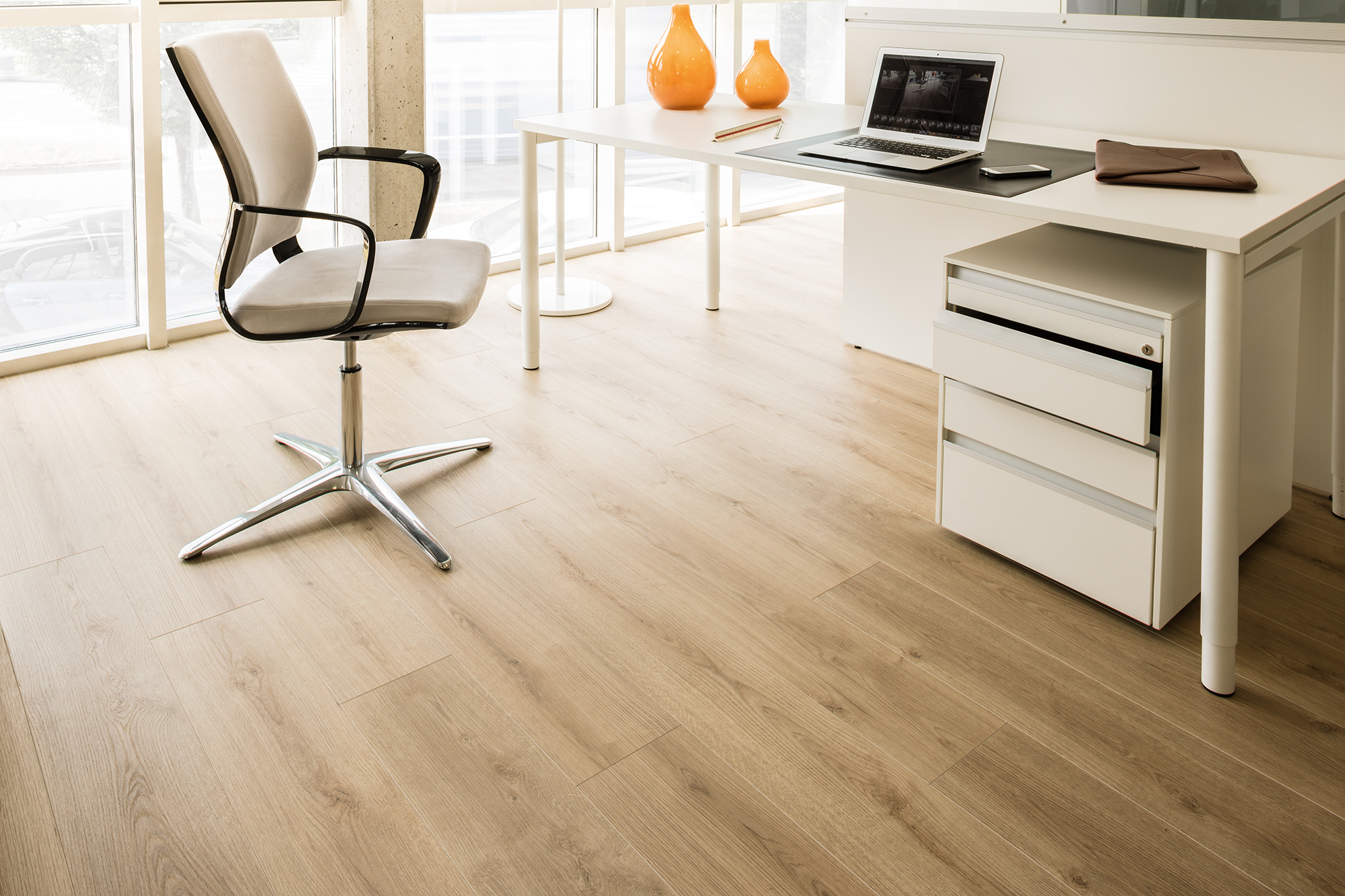 Direktbeschichteter Laminatfussboden mit 4-seitiger Microfase.